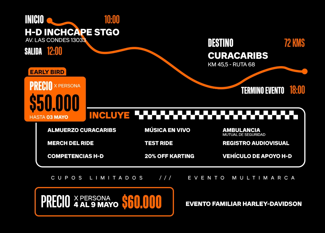 La jornada comienza a las 10:00 hrs en nuestra tienda Harley-Davidson Inchcape Santiago (Av. Las Condes 13033).